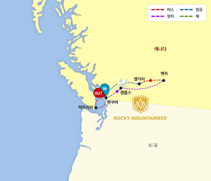 인천-밴쿠버/빅토리아(1)-빅토리아/밴쿠버(1)-캠룹스(1)-밴프(3)-캘거리(1)-밴쿠버경유-인천